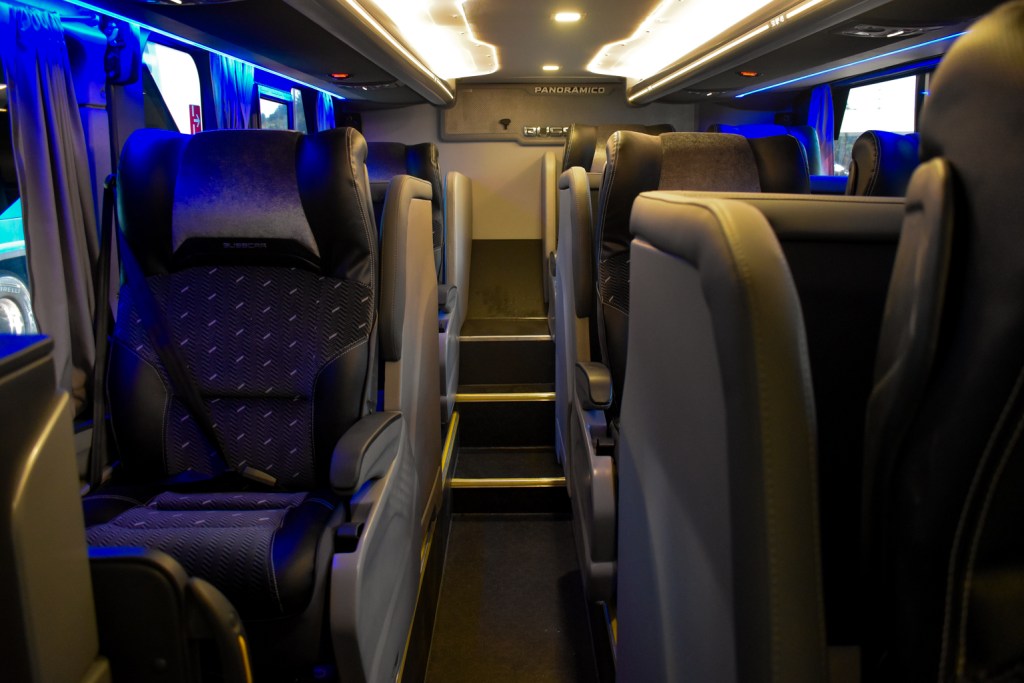 Já o piso inferior reúne oito poltronas Cama Bus com o mesmo padrão das poltronas do salão superior. Além de sanitário completo e dois assentos reservados para pessoas com deficiência. O modelo inclui elevador para cadeirantes, recurso que assegura acessibilidade total e facilita o embarque e desembarque de passageiros com mobilidade reduzida.