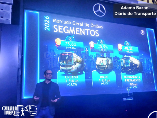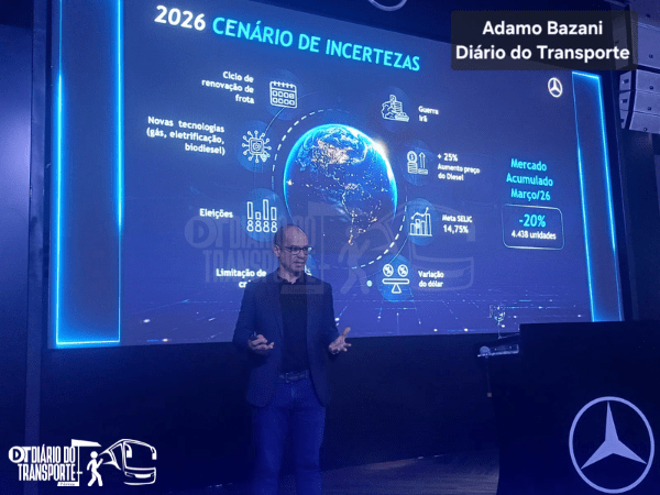 A avaliação é do vice-presidente de vendas e mercado de ônibus da Mercedes-Benz , Walter Barbosa, em evento na planta de São Bernardo do Campo, em evento com a participação do criador e editor-chefe do Diário do Transporte, Adamo Bazani, nesta quinta-feira, 16 de abril de 2026.