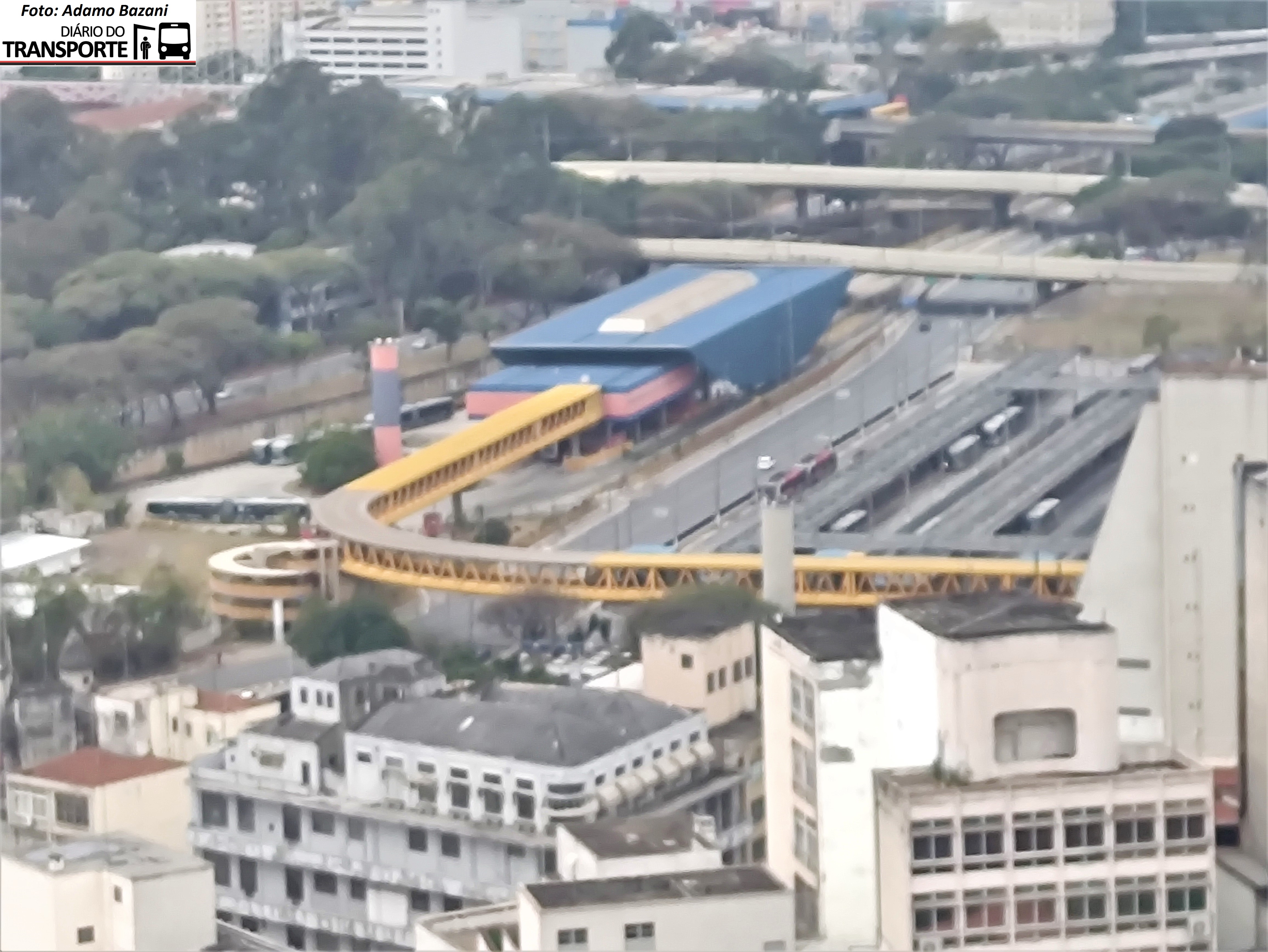 – Vigas e estruturas de ferro na cor amarela, nas passarelas que ligam o Metrô Sacomã, da linha 2-Verde, ao Terminal do Expresso Tiradentes e do Terminal Parque Dom Pedro II ao Terminal Mercado com sujeira, acúmulo de poeira e manchas;