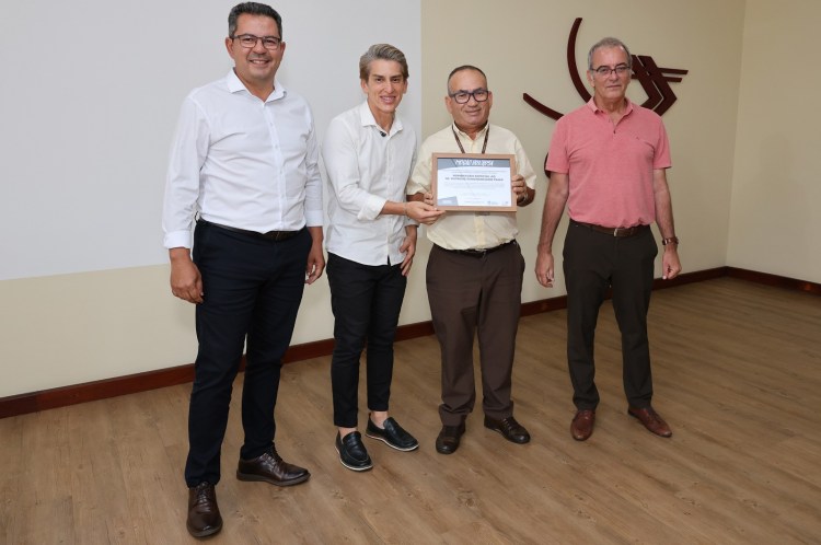 A entrega ocorreu no auditório da matriz da empresa, com a presença do parlamentar, do diretor-geral Gilmar Kalckmann e do diretor operacional Edmilson Viana.