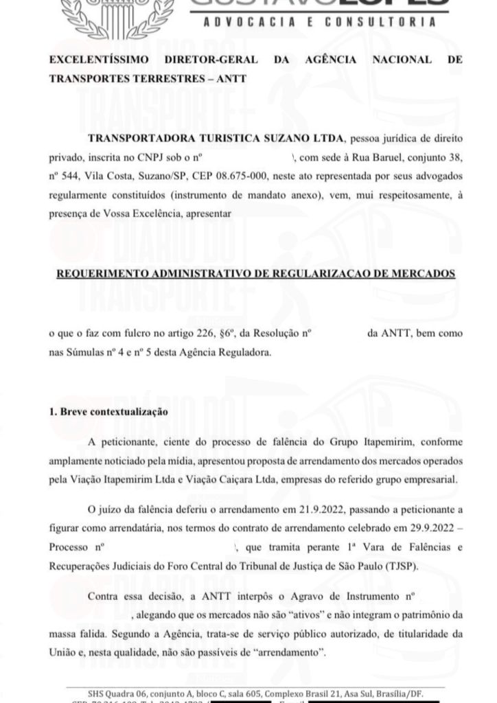 O Diário do Transporte teve acesso ao pedido da Suzanrtur (que configura como peticionante) a ANTT na íntegra.