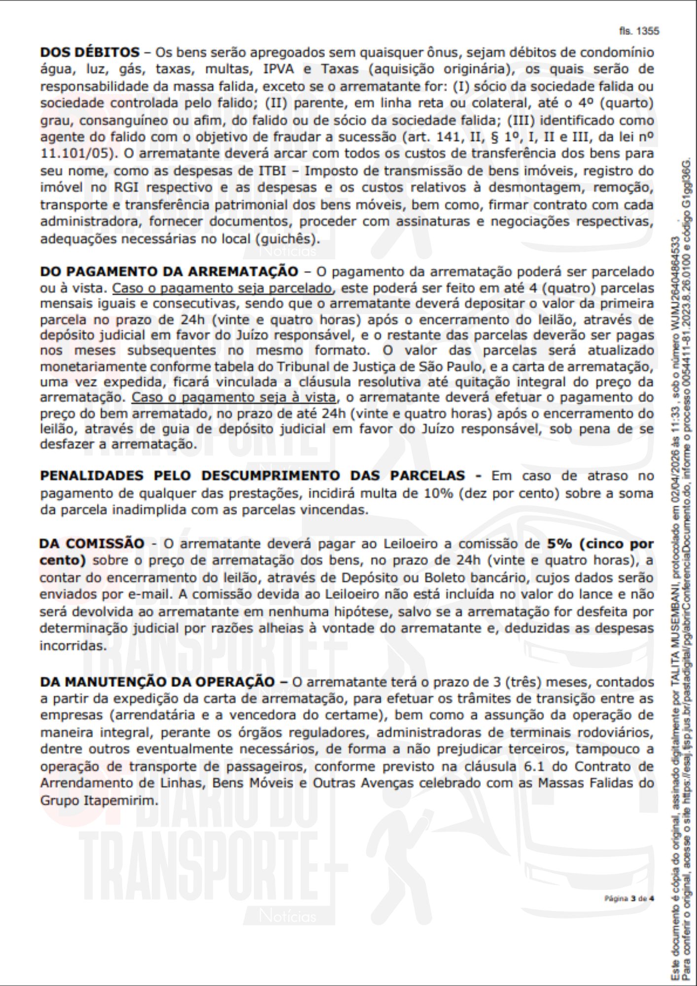 Com exclusividade, depois sendo copiado, o Diário do Transporte revelou nesta segunda-feira, 27 de abril de 2026, o novo edital do leilão do Grupo Itapemirim, que traz, na prática, poucas novidades em relação ao certame que seria realizado no ano passado, mas foi travado pela Justiça em outubro de 2025.