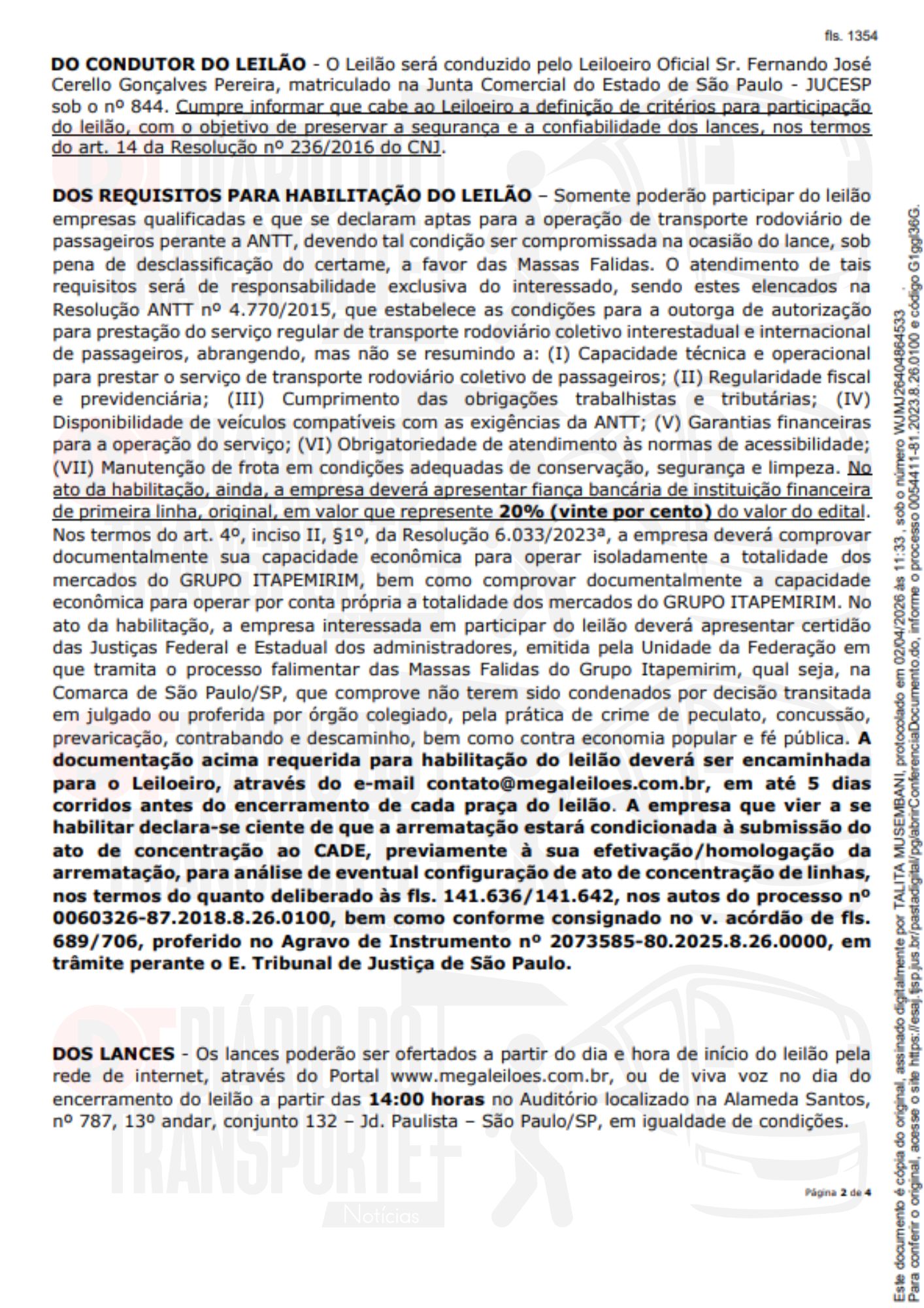 Nesta terça-feira, 28 de abril de 2026, o Diário do Transporte traz mais um avanço considerado essencial para que o leilão do Grupo Itapemirim se torne realidade.