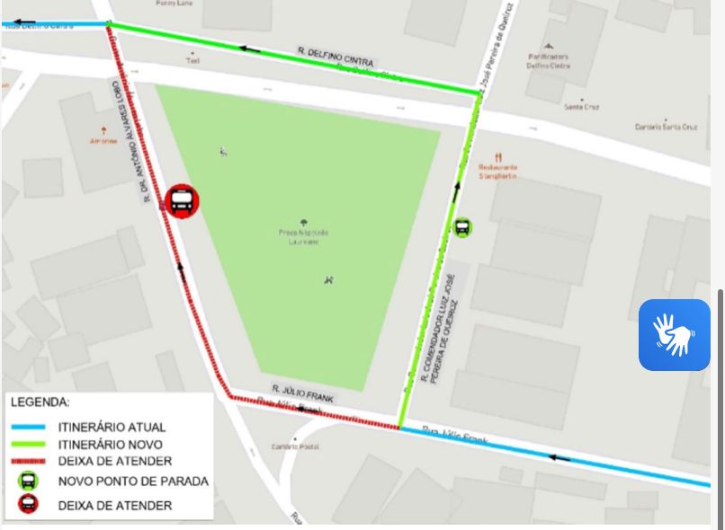Outra alteração prevista é a inversão do sentido de circulação na rua Comendador Luiz José Pereira de Queiroz, que passará a ter tráfego no sentido da rua Júlio Frank de Arruda em direção à rua Delphino Cintra.