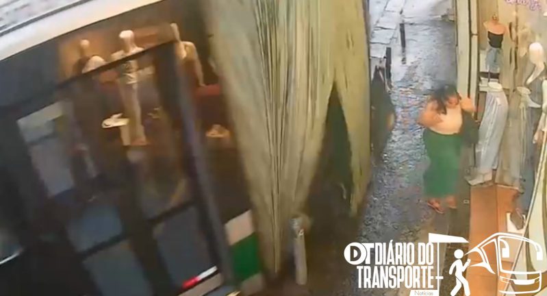 A mulher passava despreocupada no momento e quando o ônibus começou a fazer a curva, ainda olhava para o lado oposto. A calçada no local é estreita e a mulher toma um susto por quase ter sido prensada contra um muro. A pedestre não teria tempo de escapar.