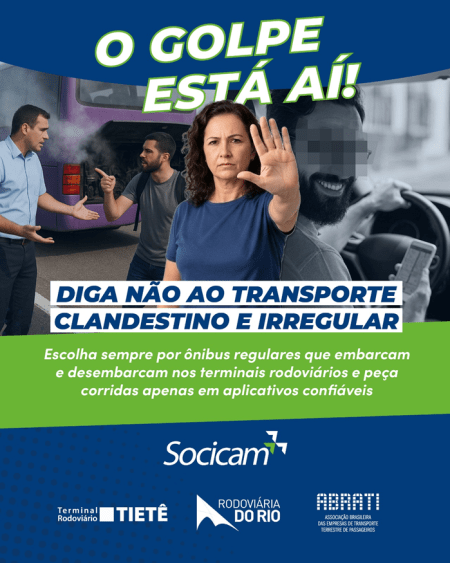Neste fim de ano, a concessionária também reforça a campanha “O Golpe Está Aí!”, voltada ao combate do transporte rodoviário irregular e de falsas ofertas de viagens. A iniciativa utiliza banners físicos e digitais nos terminais Terminal Rodoviário Tietê, Terminal Rodoviário Barra Funda e Terminal Rodoviário Jabaquara, alertando os passageiros sobre os riscos do transporte clandestino e de abordagens de supostos motoristas de aplicativos nas áreas externas.
