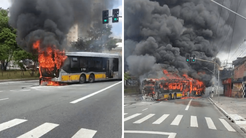 Um ônibus articulado do transporte coeltivo municipal de São Paulo foi destruído por um incêndio na manhã deste domingo, 25 de janeiro de 2026, na Avenida São Miguel, Zona Leste da capital paulista.