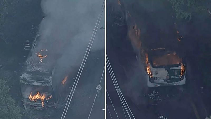 Um incêndio em um ônibus municipal de São Paulo, da concessionária Transunião, na Rua malmequer do Campo, no Parque do Carmo, Zona Leste de São Paulo, bloqueou totalmente a via por volta de 6h20 nesta segunda-feira, 8 de dezembro de 2025.