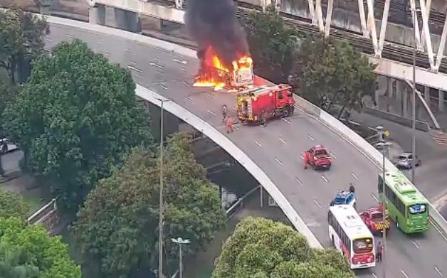 O veículo seguia no sentido Maracanã quando as chamas começaram, provocando a interdição total do viaduto e reflexos no trânsito da região.