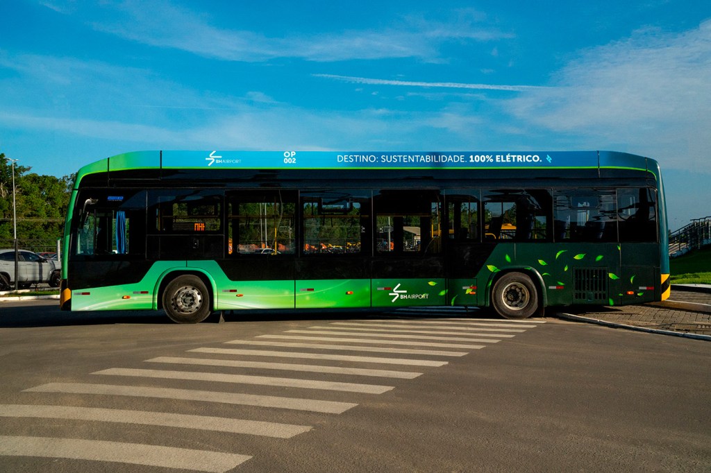 Aeroporto de BH é o primeiro do Brasil a contar com ônibus elétricos da marca; veículos de produção nacional são os primeiros 100% elétricos a operar no embarque e desembarque de passageiros