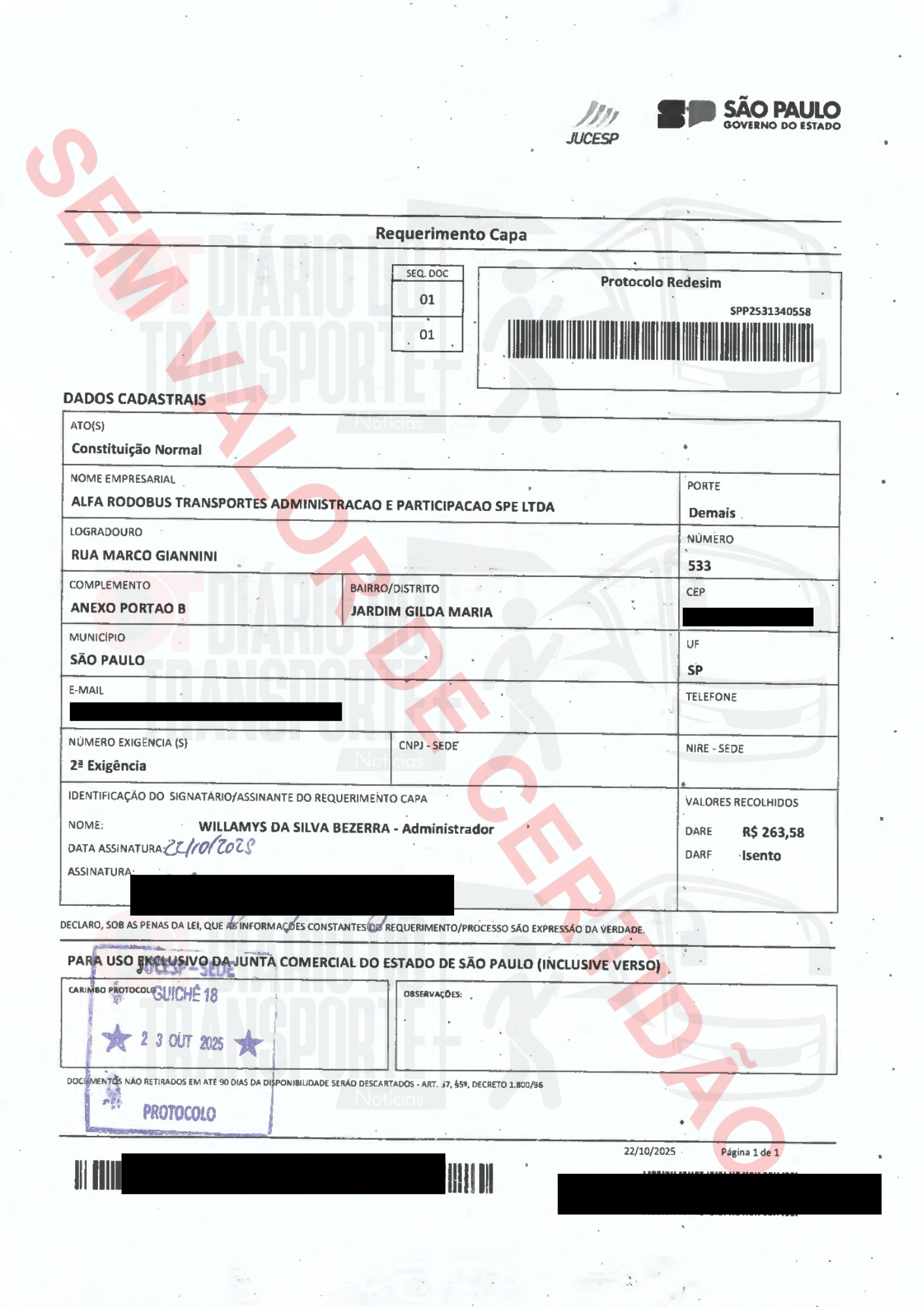 Neste sábado, 14 de fevereiro de 2026, o Diário do Transporte traz a documentação oficial da constituição da SPE.
