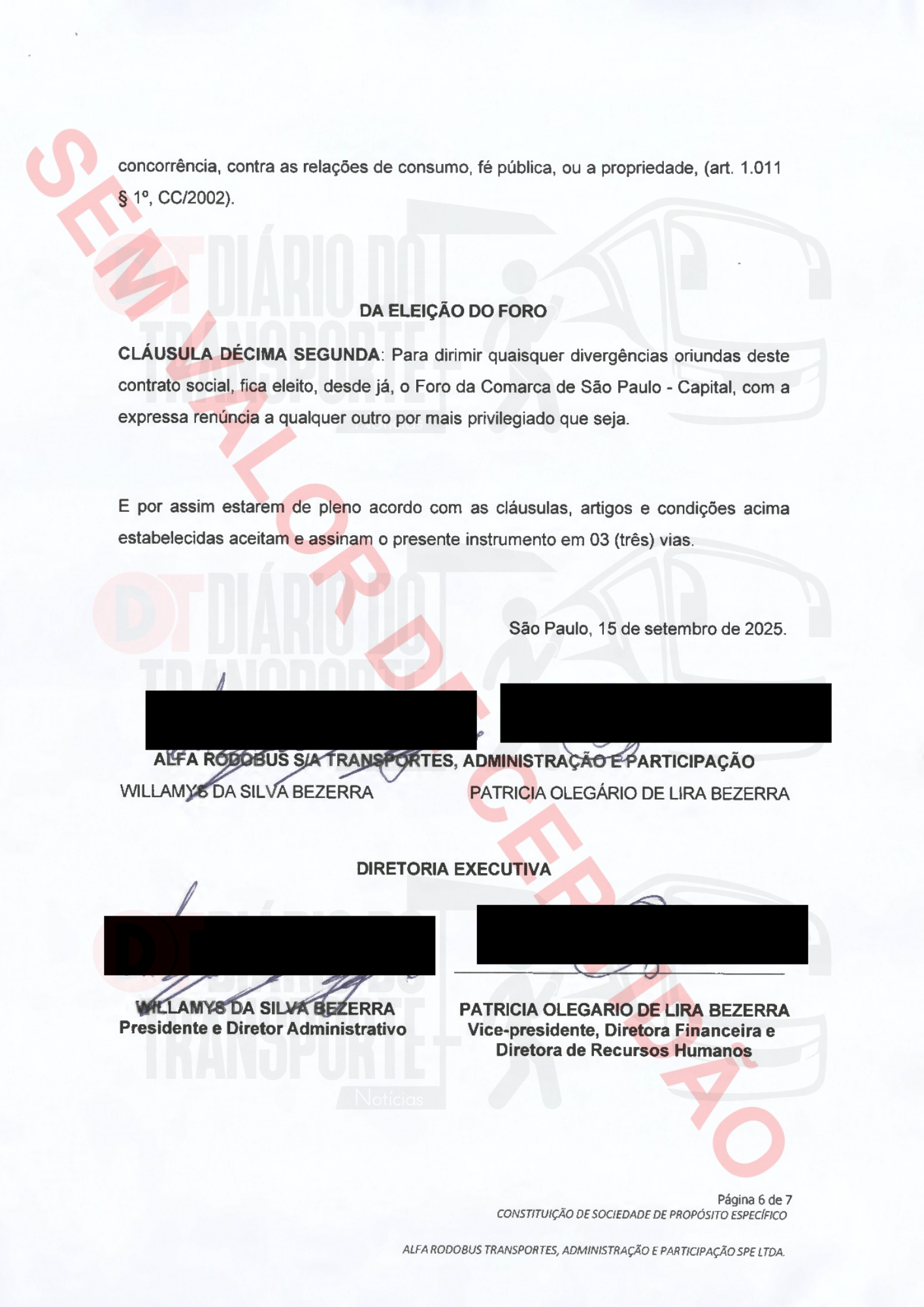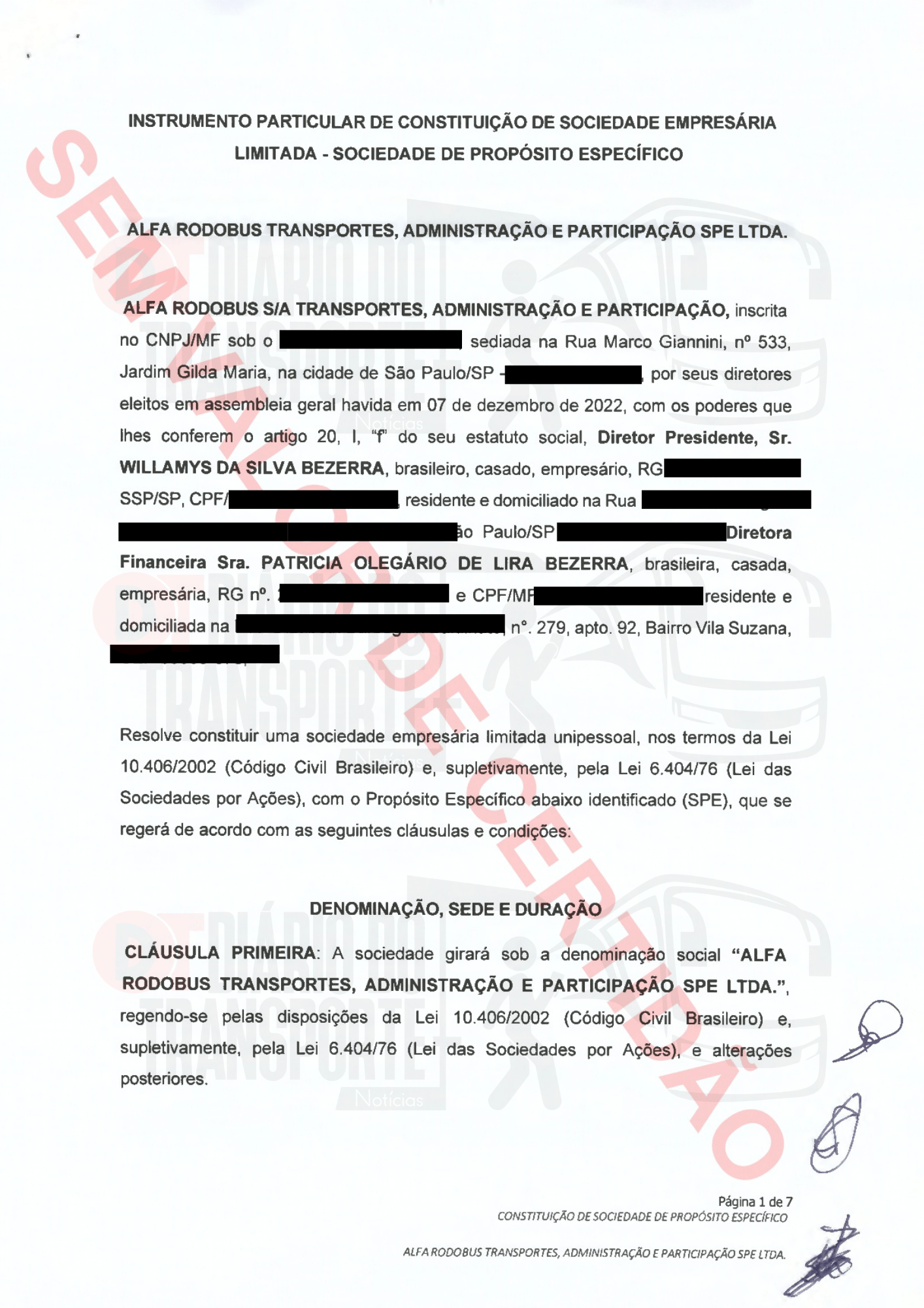 Neste sábado, 14 de fevereiro de 2026, o Diário do Transporte traz a documentação oficial da constituição da SPE.