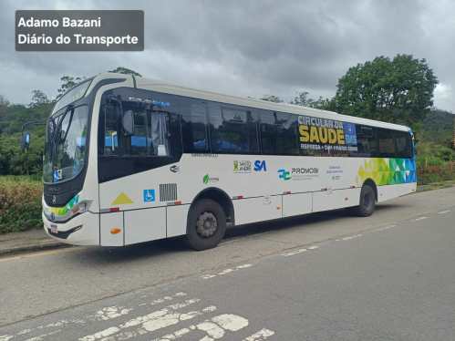 Os ônibus possuem adesivos especiais indicando o serviço e, no letreiro digital do para-brisa que fica na parte inferior indica os principais equipamentos de Saúde atendidos.