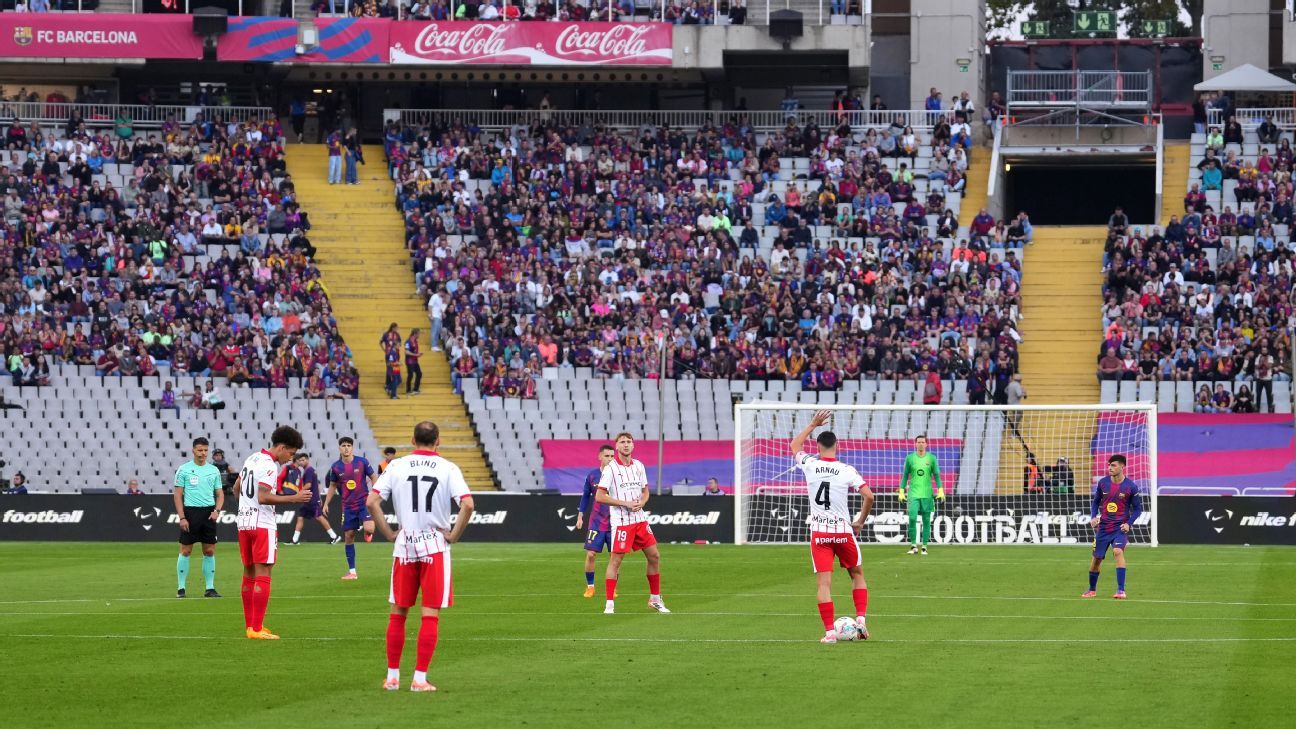 Uma cena chamou a atenção no início do jogo entre Barcelona e Girona, neste sábado (18), por LALIGA, com transmissão do Disney+.