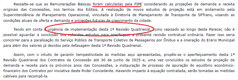 Apesar de todos esses elementos já constarem no parecer técnico e na minuta oficial, a Prefeitura ainda não assinou o aditivo, deixando o sistema operando com parâmetros desatualizados desde maio de 2024. Trechos do Parecer Técnico da SMT: