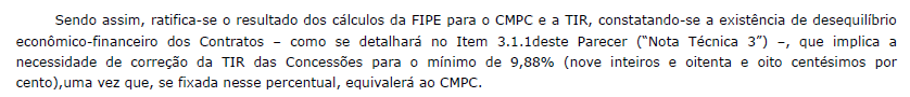 A TIR funciona, na prática, como um teto de rentabilidade permitido às concessionárias. É o indicador que estabelece qual retorno máximo as empresas podem obter sobre os investimentos feitos na operação. Quando esse índice é reduzido, como ocorreu agora, toda a base de cálculo do reequilíbrio econômico-financeiro também muda: uma TIR menor restringe o retorno admitido pelo contrato e torna mais rígida a recomposição dos valores devidos. Em termos simples, a TIR define quanto a operadora pode ganhar sem que o contrato seja considerado desequilibrado.