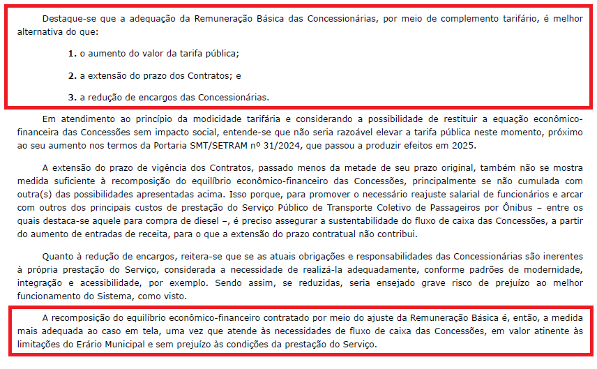 Apesar de todos esses elementos já constarem no parecer técnico e na minuta oficial, a Prefeitura ainda não assinou o aditivo, deixando o sistema operando com parâmetros desatualizados desde maio de 2024. Trechos do Parecer Técnico da SMT:
