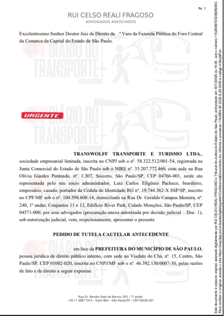 Na petição ainda, a qual o Diário do Transporte teve acesso, os advogados da Transwolff alegam necessidade de urgência na decisão (Presença do Fumus Boni Iuris e do Periculum in Mora).