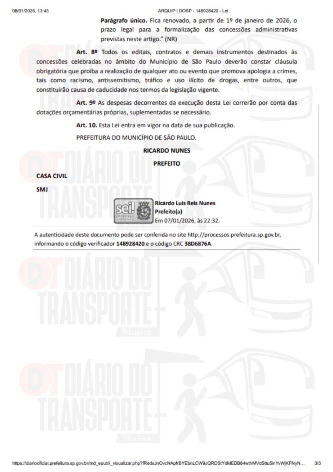 As propostas estão na lei 18.382, de 07 de janeiro de 2026, fruto do projeto de lei do executivo municipal nº 1447/25, aprovado na forma de Substitutivo do Legislativo. A publicação oficial ocorreu nesta quinta-feira, 08 de janeiro de 2026, e a concretização depende agora da aceitação do Governo do Estado de São Paulo.