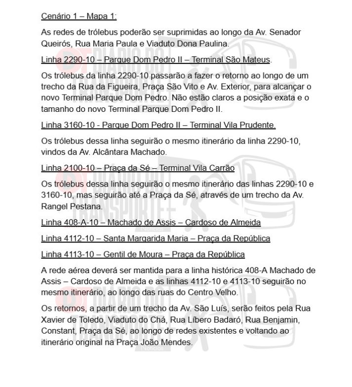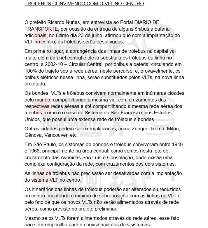 O prefeito Ricardo Nunes comentou que a implantação do VLT no centro de São Paulo será mais um motivo para a desativação dos trólebus na cidade. Primeiramente, a abrangência das linhas de trólebus é bem maior do que somente na rótula central, e no passado, aqui na cidade de São Paulo, os dois sistemas coexistiram, desde 1949 até 1968. Principalmente na área central, onde em algumas avenidas as redes dos dois sistemas se cruzavam. E no exterior, há muitas cidades com os dois sistemas operando normalmente, como por exemplo em Zurique, Roma, Milão, Gênova, Vancouver no Canadá, e em São Francisco, onde existe uma vasta rede de bondes e trólebus, os bondes compartilham a mesma rede dos trólebus em uma das principais avenidas. E ainda no projeto do VLT em São Paulo, não haverá a rede aérea. A previsão é que os veículos serão acionados por baterias ou pelo terceiro trilho. Portanto, não há nenhum empecilho na convivência dos dois sistemas, seja compartilhando a mesma via ou existindo os cruzamentos das respectivas redes. – disse.