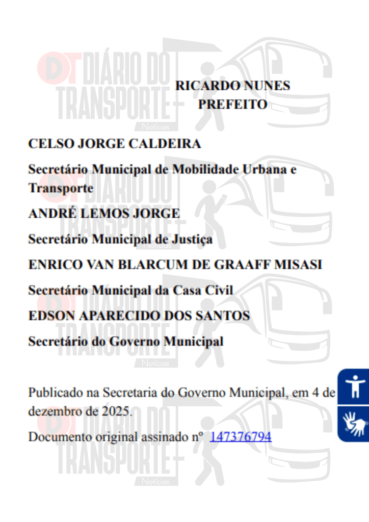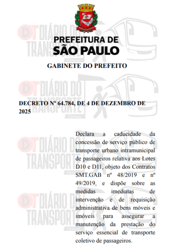 A Prefeitura de São Paulo informou na noite de 04 de dezembro de 2025, o decreto que determina a caducidade dos contratos com a concessionária de ônibus Transwolff.