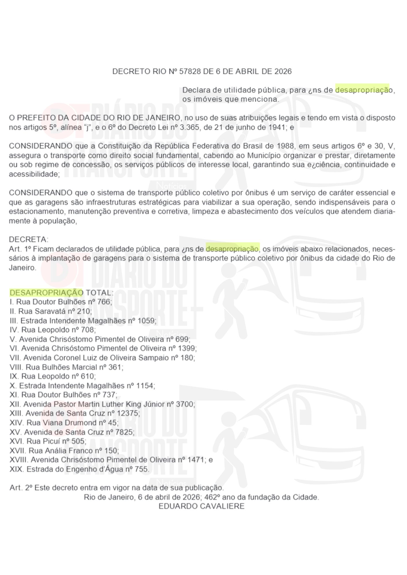 Como mostrou o Diário do Transporte, somente neste ano de 2026, já foram diferentes decretos de desapropriações.