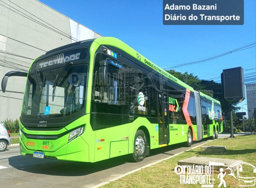 Os primeiros ônibus 100% a bateria, com 21,5 metros de comprimento, do BRT ABC, começaram a realizar testes em campo neste sábado, 14 de março de 2026, ao longo do corredor exclusivo. Ao todo, pelo menos três veículos foram colocados em operação para verificações operacionais e treinamento de motoristas.