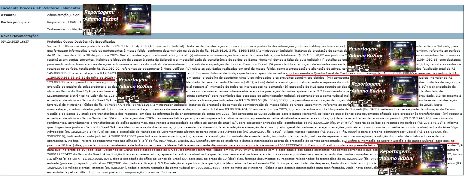 O Diário do Transporte traz neste sábado, 06 de dezembro de 2025, mais uma vez de forma exclusiva, a informação sobre um dos andamentos mais relevantes das últimas semanas do processo sobre o leilão do Grupo Itapemirim: a “evolução” para o status de “Conclusos para Decisão” e não somente isso: atualização de valores e de movimentos bancários.