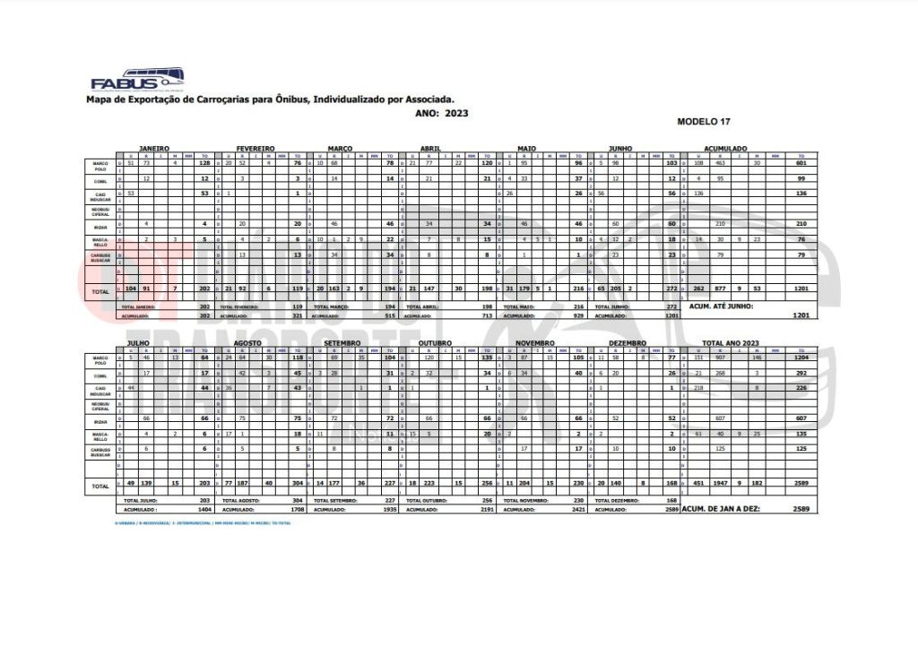 Em 2024, de janeiro a dezembro, foram fabricadas 23.099 carrocerias, enquanto que no mesmo período de 2023, saíram das linhas de produção um total de 19.612 unidades.