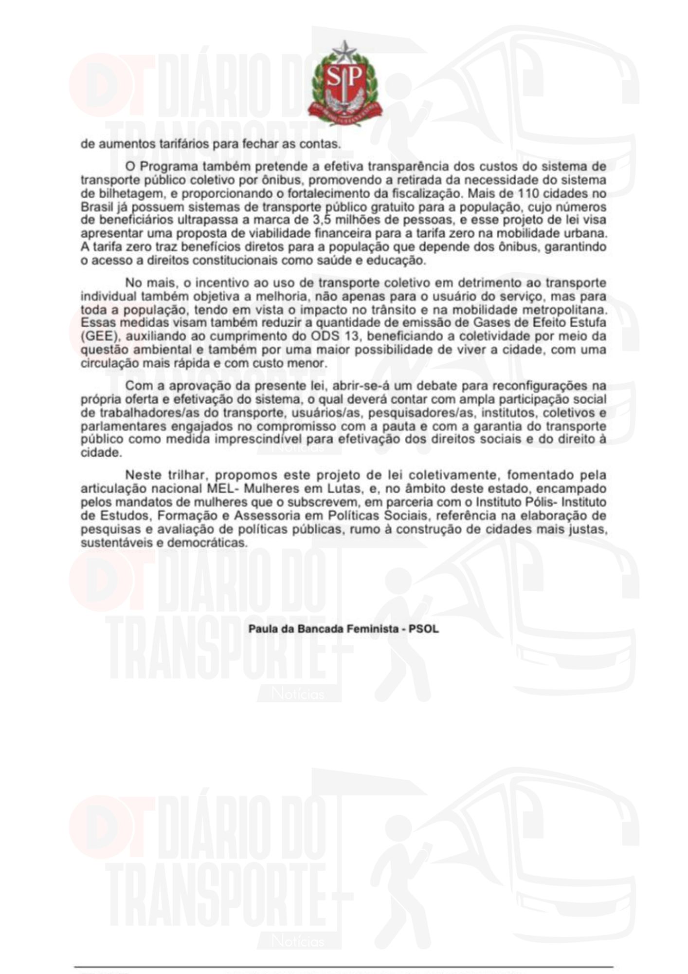 A proposta institui o “Programa Estadual de Incentivo ao Uso do Transporte Público Coletivo por Ônibus e autoriza a implementação da tarifa zero no serviço do transporte público metropolitano coletivo por ônibus”.