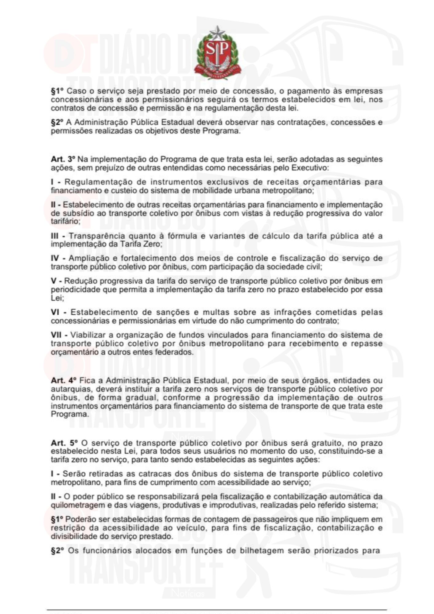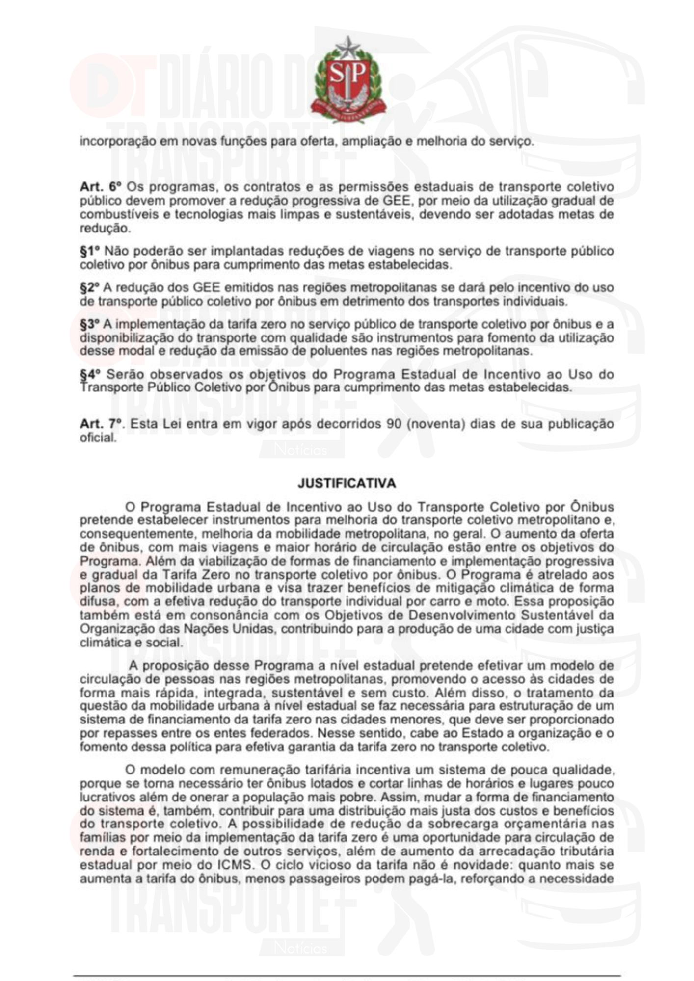 De acordo ainda com o projeto, o Estado deverá também incentivar os municípios a adotar tarifa-zero nos ônibus locais.