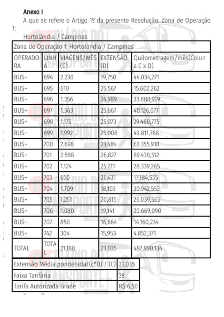 Todas as linhas metropolitanas de ônibus terão aumento.