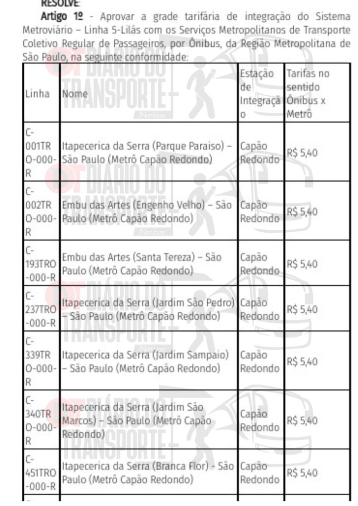 ÔNIBUS DA CAPITAL PAULISTA (SPTRANS); TRANSPORTES METROPOLITANOS EM TRILHOS E ÔNIBUS INTERMUNICIPAIS METROPOLITANOS (logo depois das tabelas)