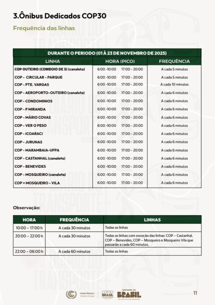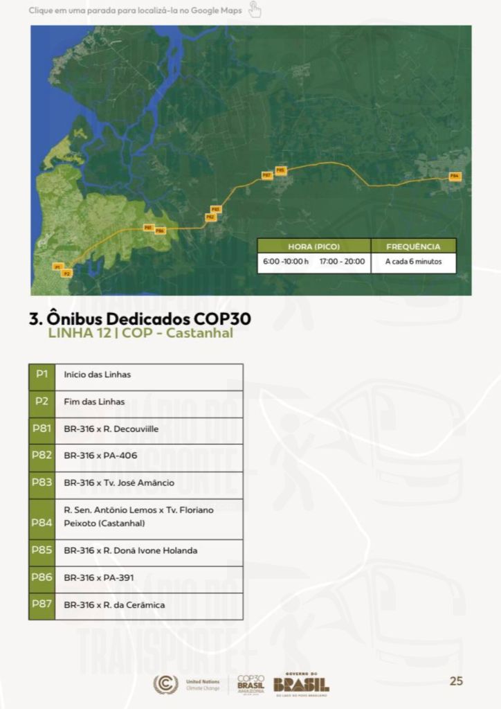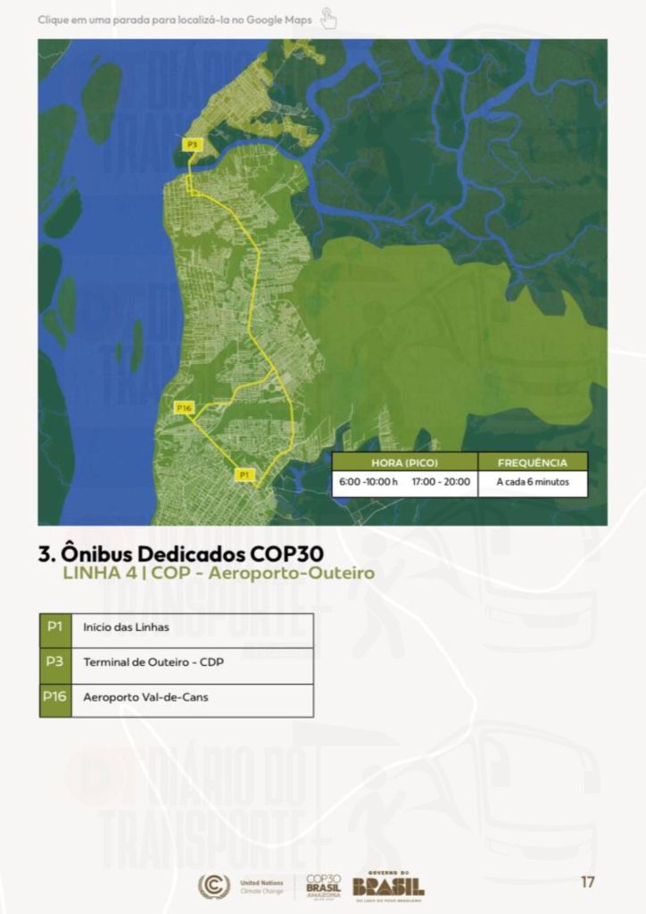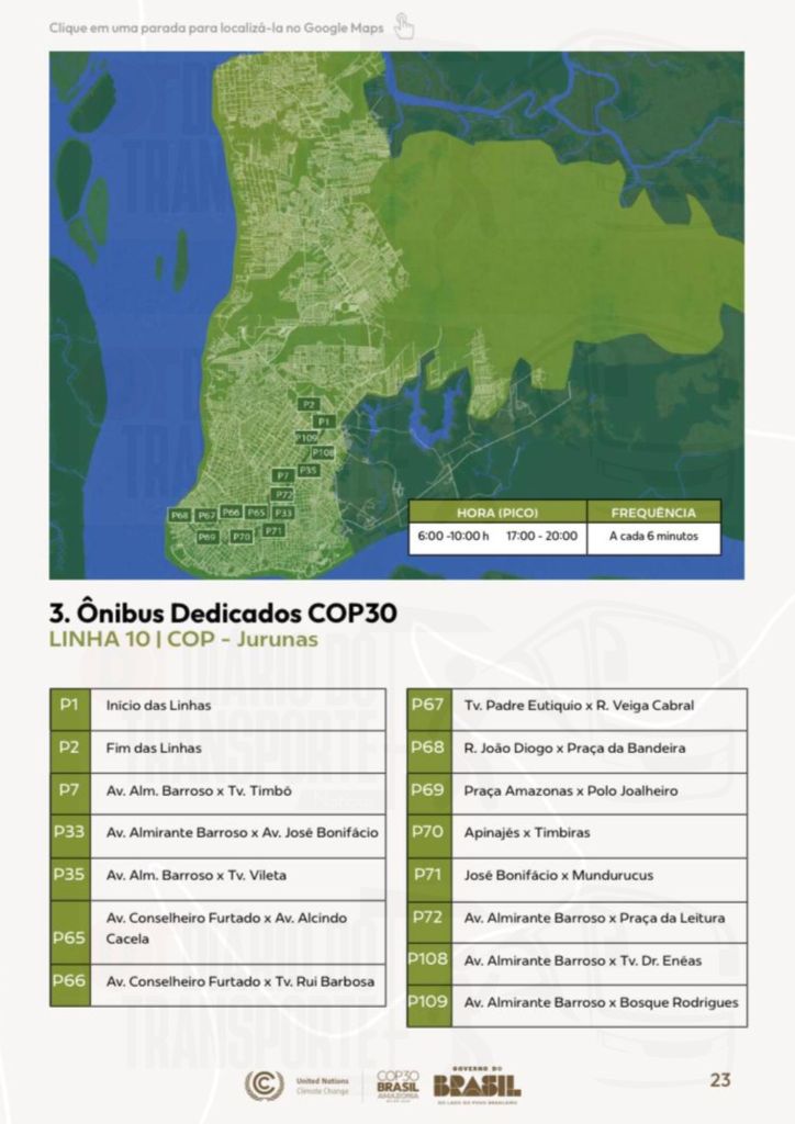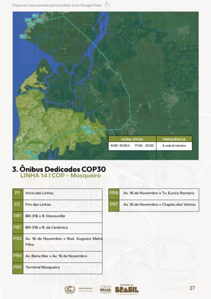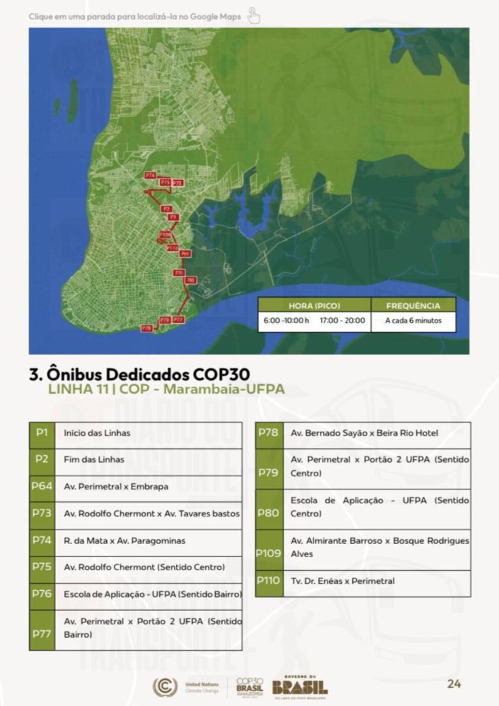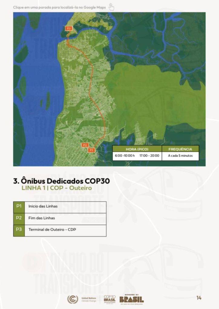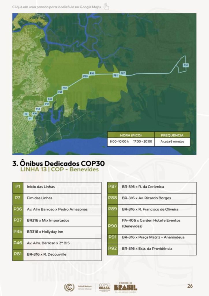 A Cop-30, Conferência Mundial sobre Mudanças Climáticas, que ocorre até o dia 21 de novembro de 2025 em Belém (PA) oferece para os participantes credenciados 15 linhas de ônibus especiais gratuitos para facilitar os deslocamentos de expositores, delegações oficiais e equipes de apoio.