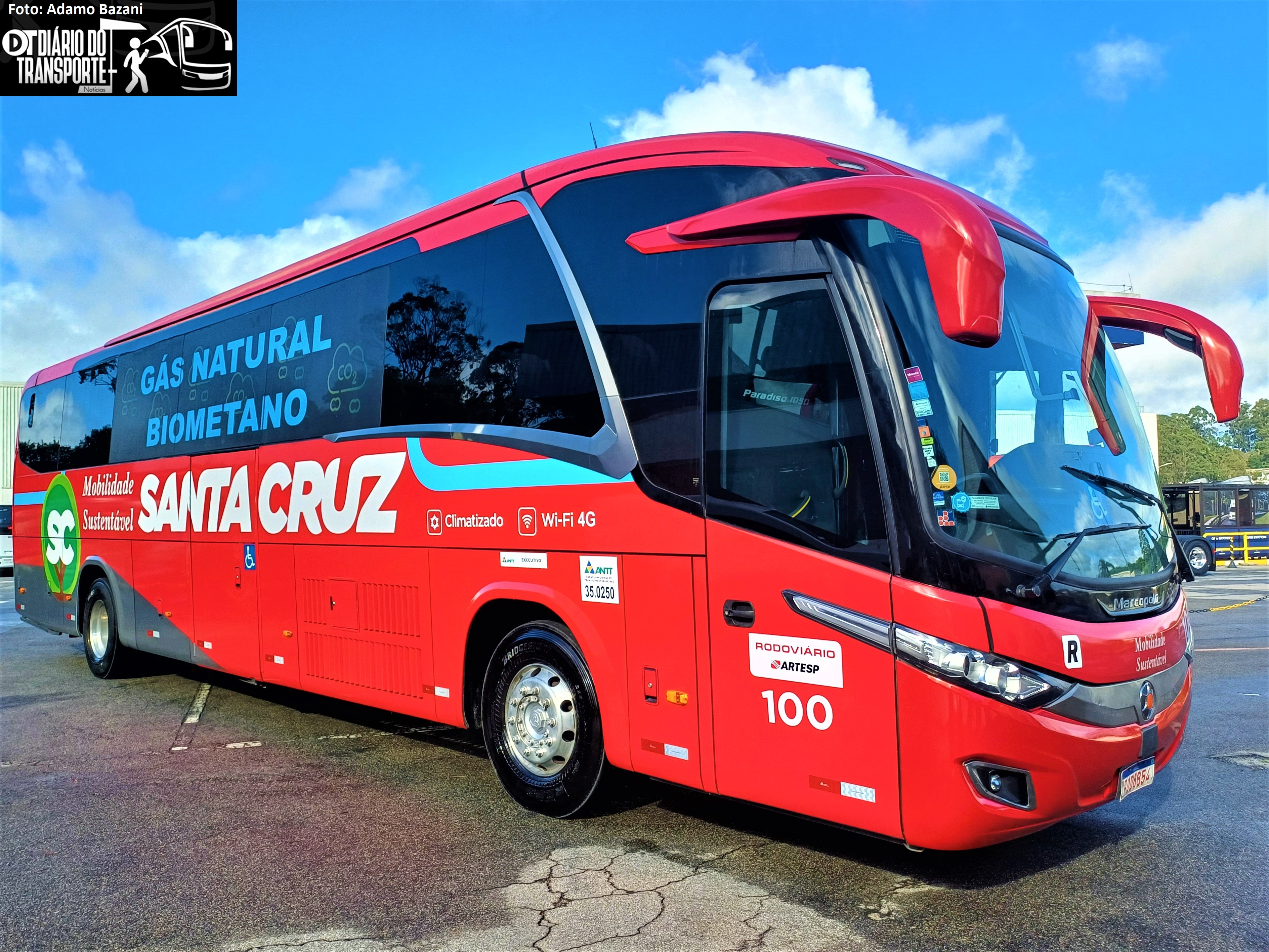 O modelo da Santa Cruz tem seis cilindros tipo 1, de 720 litros, colocados no centro do ônibus, ocupando parte dos bagageiros, o que indica aplicação em rotas menores e médias, que os passageiros levam menos malas.