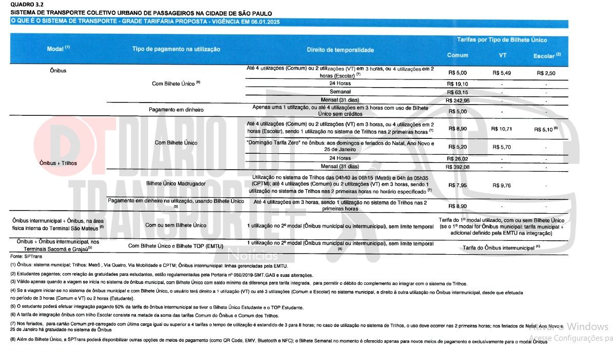 *Capital Paulista (Ônibus Municipais SPTrans) – a partir de 06/01/2025:*