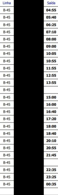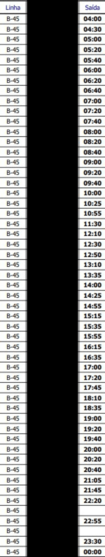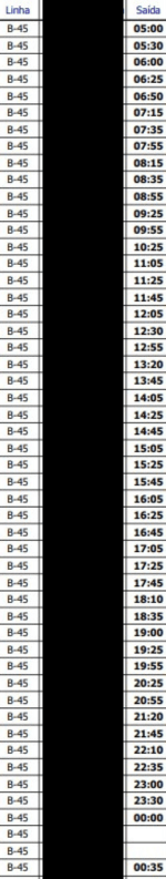 Mas o Diário do Transporte também presta o serviço e traz as tabelas completas com os horários de partidas de segunda-feira a sexta-feira, dos sábados e dos domingos.