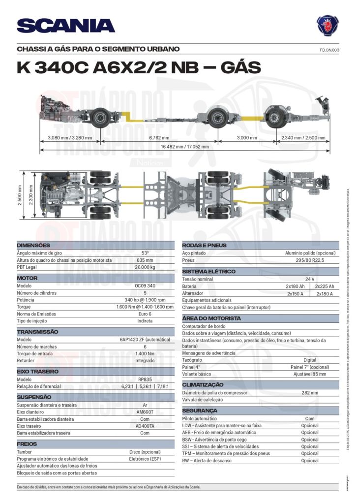A Scania, que já exporta a partir do ABC Paulista ônibus a GNV/biometano, com presença em sistema latino-americanos, como no Transmilênio, em Bogotá, na Colômbia, também divulgou a ficha técnica com as principais características do modelo que vai operar em Goiás.