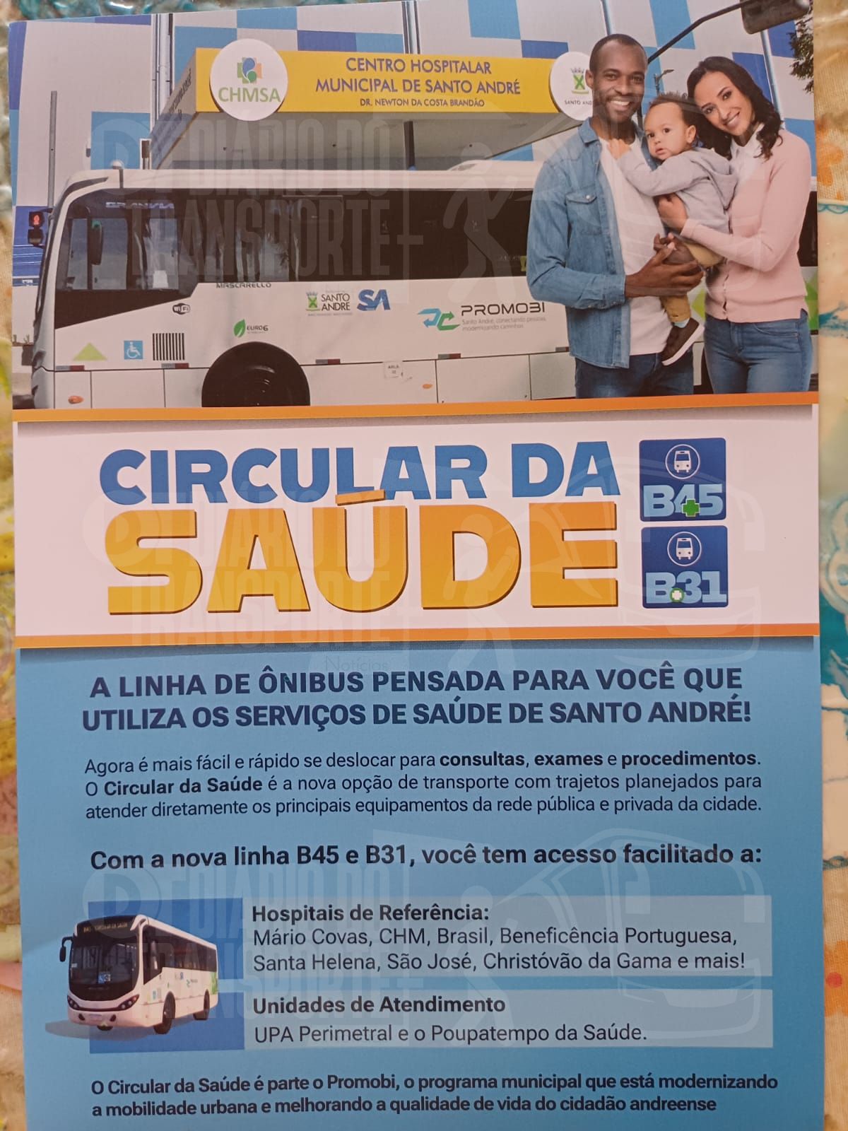 A chamada linha Circular da Saúde B45 (Represa – Vila Luzita /Paraíso – Hospital Mário Covas) conecta os principais hospitais da cidade como o Futuro Hospital Vila Luzita; H & M – Hospital e Maternidade São José do ABC; Hospital Beneficência Portuguesa; CHMSA – Centro Hospitalar Municipal de Santo André (Santa Casa – Hosp. Municipal); H & M– Hospital e Maternidade Dr. Christóvão da Gama; Casa da Esperança; H & M – Hospital e Maternidade Brasil; Hospital Mário Covas. (AO LONGO DA REPORTAGEM, VEJA TODAS AS RUAS ATENDIDAS)
