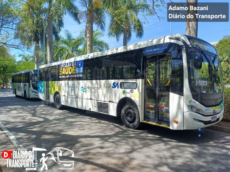 Os ônibus possuem adesivos especiais indicando o serviço e, no letreiro digital do para-brisa que fica na parte inferior indica os principais equipamentos de Saúde atendidos.