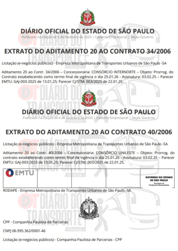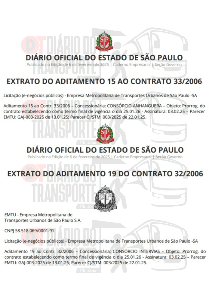 Os termos de aditamentos foram publicados nesta quinta-feira, 06 de fevereiro de 2025, mas tiveram pareceres favoráveis em 22 de janeiro e valem até 26 de janeiro de 2026.