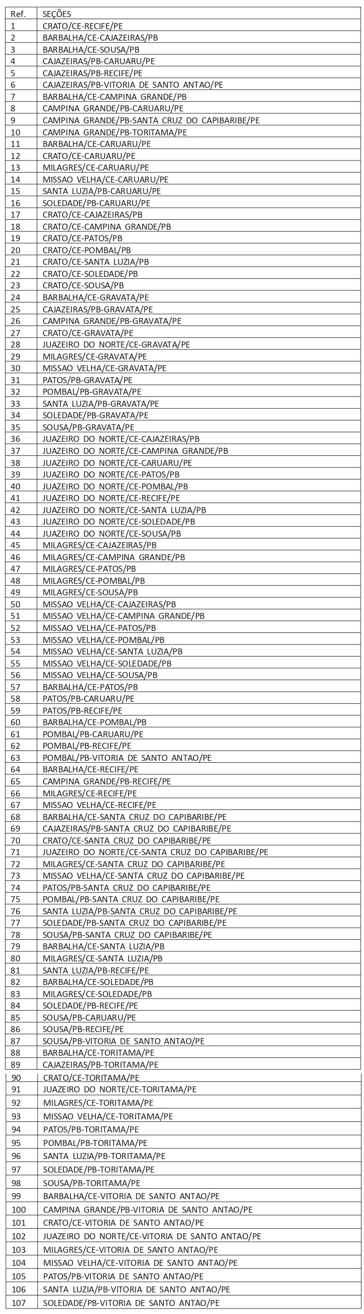 A partida de Campina Grande no sentido Ceará é às 21h10 das sextas-feiras e no sentido Pernambuco, 4h10 – já na madrugada das segundas-feiras.