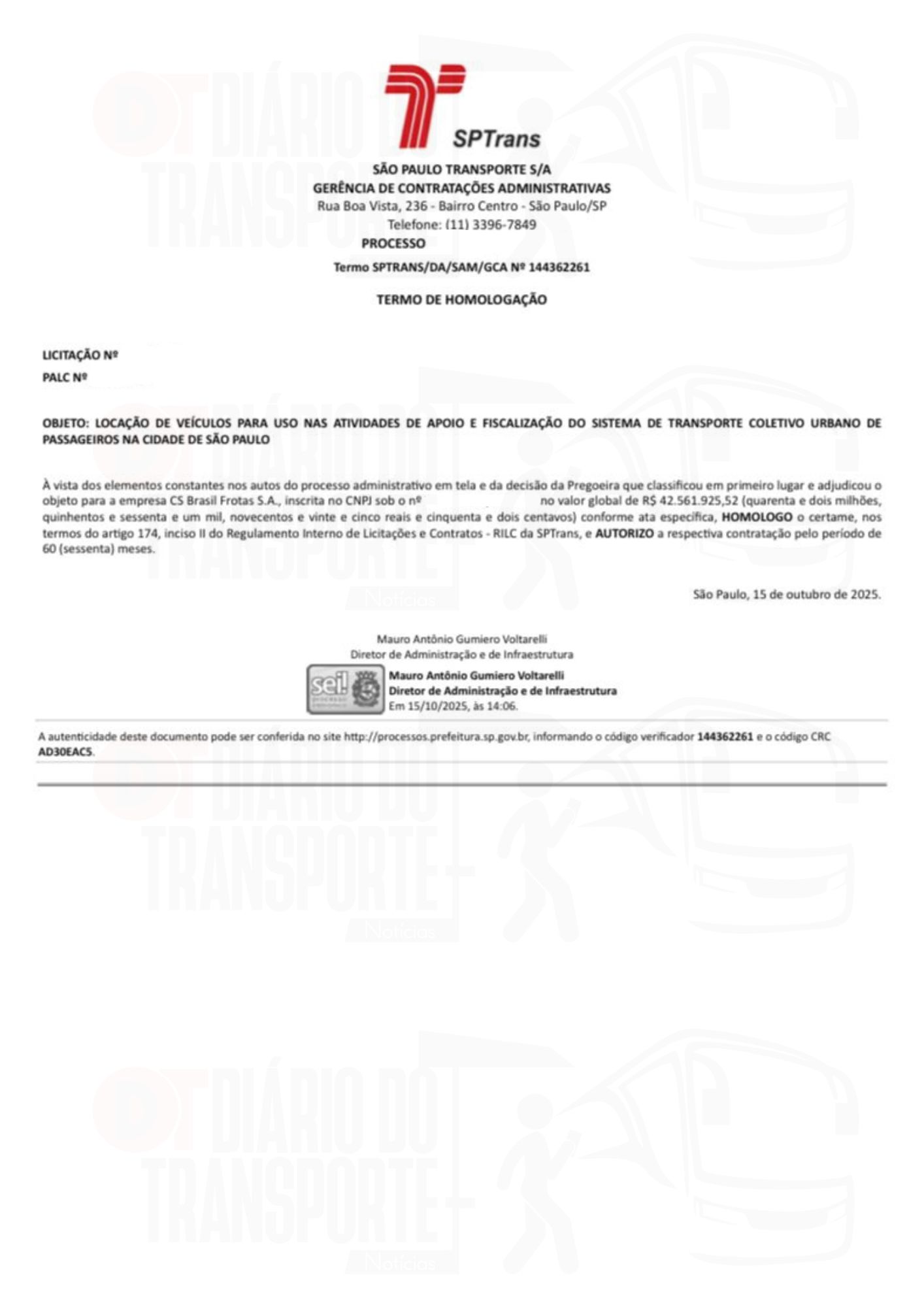 O Diário do Transporte, em 18 de outubro de 2025, de forma exclusiva noticiou o resultado da licitação para a locação destes veículos.