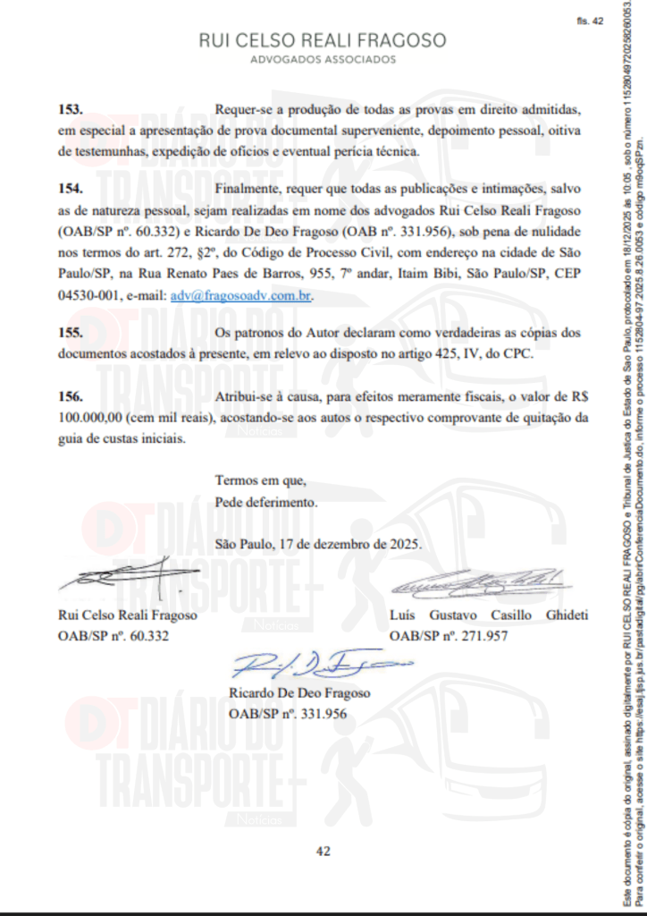 Na petição ainda, a qual o Diário do Transporte teve acesso, os advogados da Transwolff alegam necessidade de urgência na decisão (Presença do Fumus Boni Iuris e do Periculum in Mora).