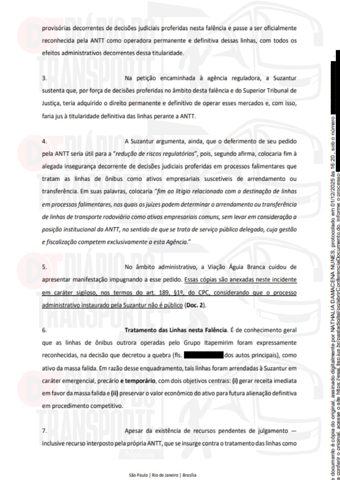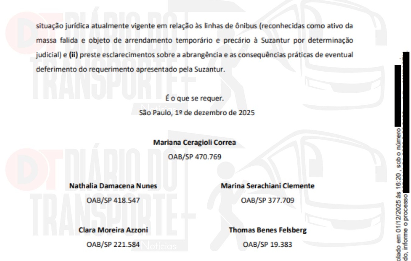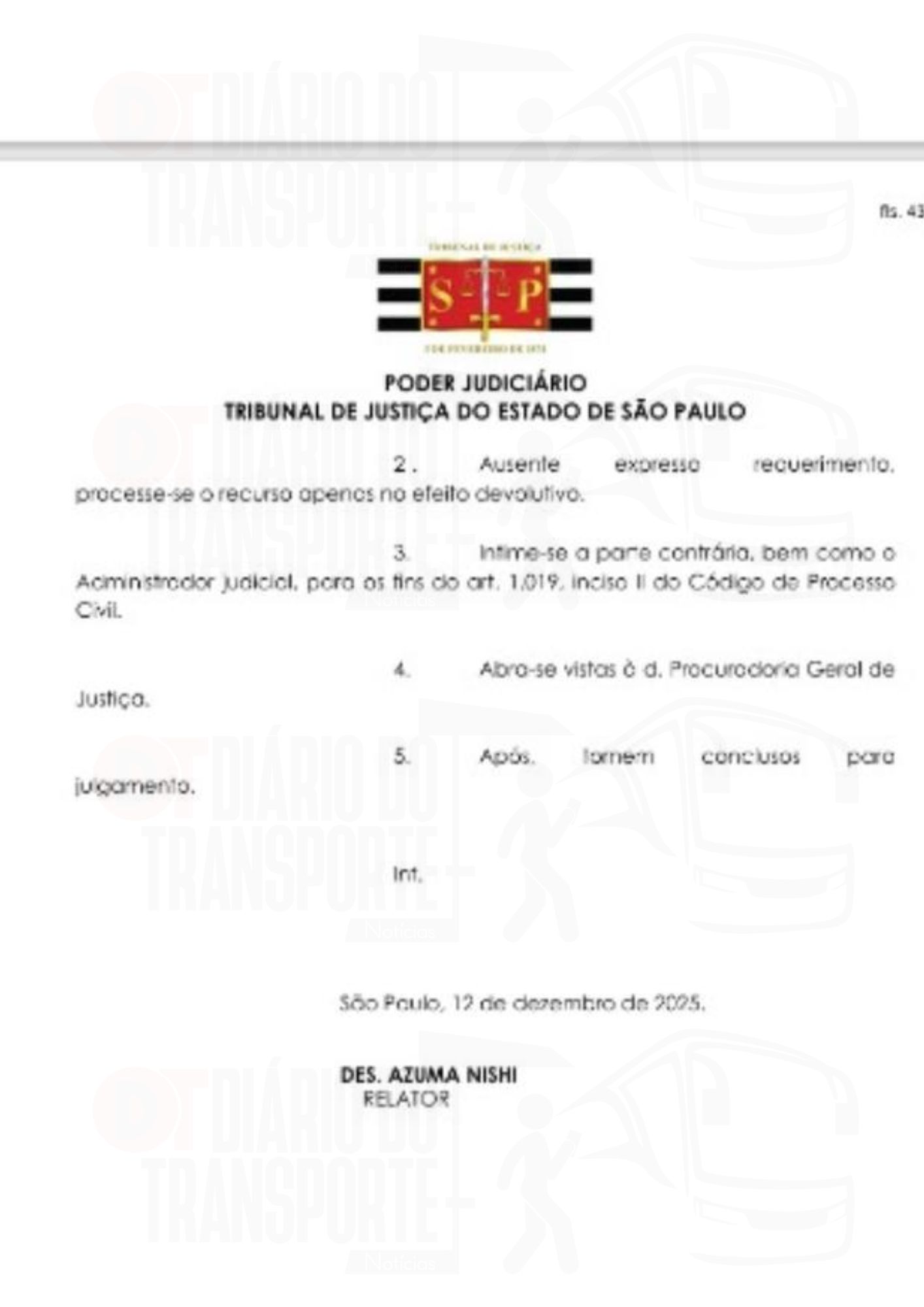 A determinação é de 12 de dezembro de 2025, dando entrada no sistema da Justiça nesta segunda-feira (15). O Diário do Transporte traz com exclusividade e em primeira-mão.