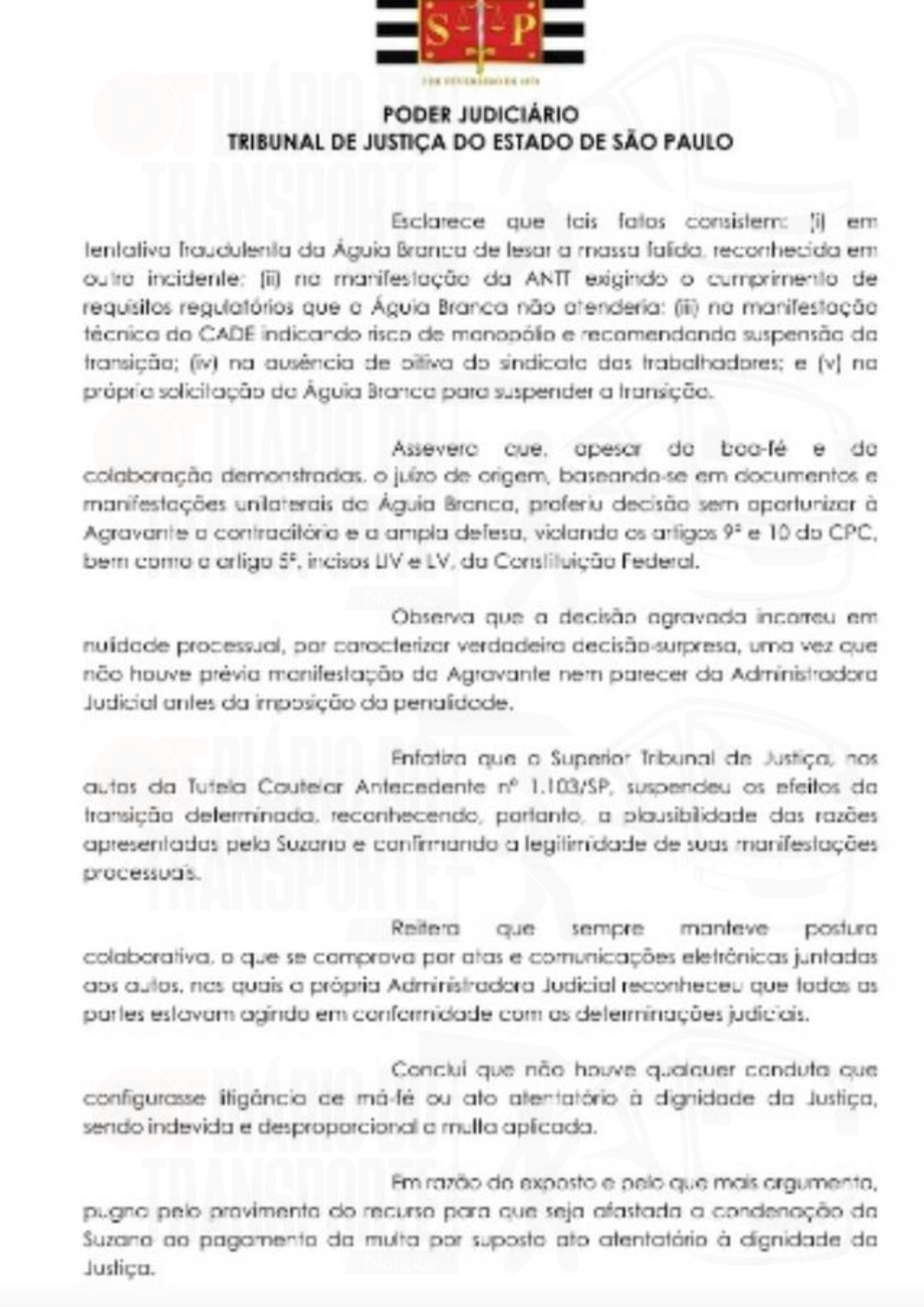A Águia Branca aponta riscos caso os pedidos da Suzantur fossem aceitos.