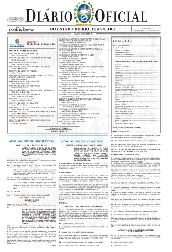 A obrigatoriedade de carro (vagão) somente para mulheres foi publicada em edição extra do Diário Oficial do Estado, da segunda-feira, 23 de março de 2026.