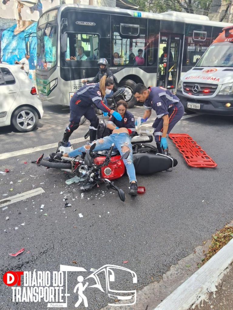Pedestres relataram que o coletivo teria parado no semáforo e o motociclista atingiu a traseira do veículo.