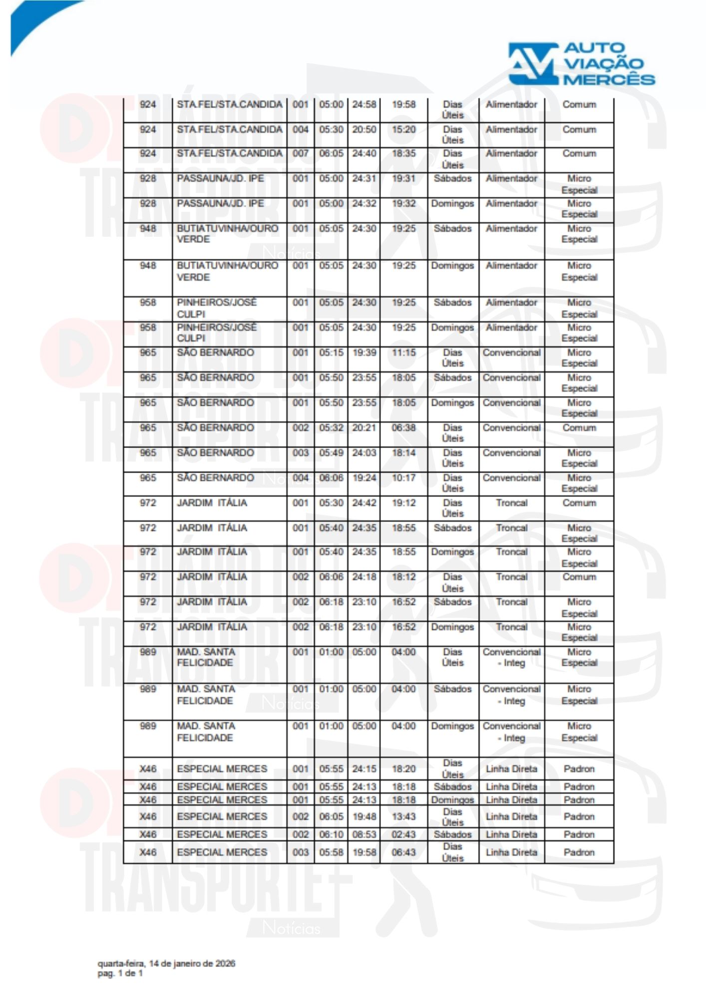 “Graças ao trabalho liderado pela área de fiscalização e operação da Urbs, a reorganização foi rápida. A Mercês opera dez linhas que também são compartilhadas com outras empresas: 022- Inter 2 (horário), 023 – Inter 2 (anti-horário), 040 – Interbairros IV, 464 – A. Munhoz/Jardim Botânico, 817 – Saturno/Veneza, 821- Fernão Dias, 901 – Santa Felicidade, 902 – Santa Felicidade/Praça Tiradentes, 911- Passaúna; e 979 – Linha Turismo. A empresa atua com outras sete linhas exclusivas X46 – Especial Mercês; 150 – C. Musica/V. Alegre; 912 – José Culpi; 913 – Butiatuvinha; 915 – O. Verde/V. Bádia; 967 – Júlio Graf; e 972 – Jardim Itália”. – diz nota da administração que prossegue afirmando que a Viação Mercês vinha sendo notificada desde o ano passado por atrasos em pagamentos, além de problemas no atendimento e reclamações relacionadas à manutenção e à quebra de ônibus. Desde outubro de 2025, de acordo com a Urbs, foram, 541 notificações por atendimento inadequado – supressão de viagens e descumprimento de tabela de horários – e duas por falta de pagamento aos funcionários.