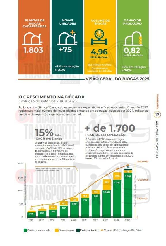 Os números que integram o “Panorama do Biogás 2025” reforçam a preocupação de empresas de ônibus, principalmente, quanto à disponibilidade para um crescimento de frota mais expressivo e dos custos de distribuição e operação.